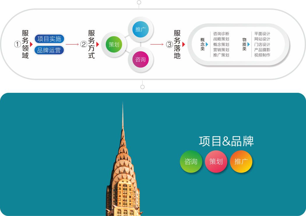 一站式服務,能保證品牌各個環(huán)節(jié)呈現(xiàn)出的作品,能形成一個相對平衡的整體形象水準,避免因為不同公司服務而造成的參差不齊。